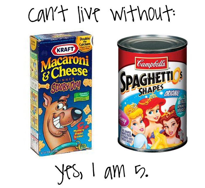 And then, because I just can’t let it go… I have to have mac n cheese, or spaghettio’s once a week. Preferably in these shapes.